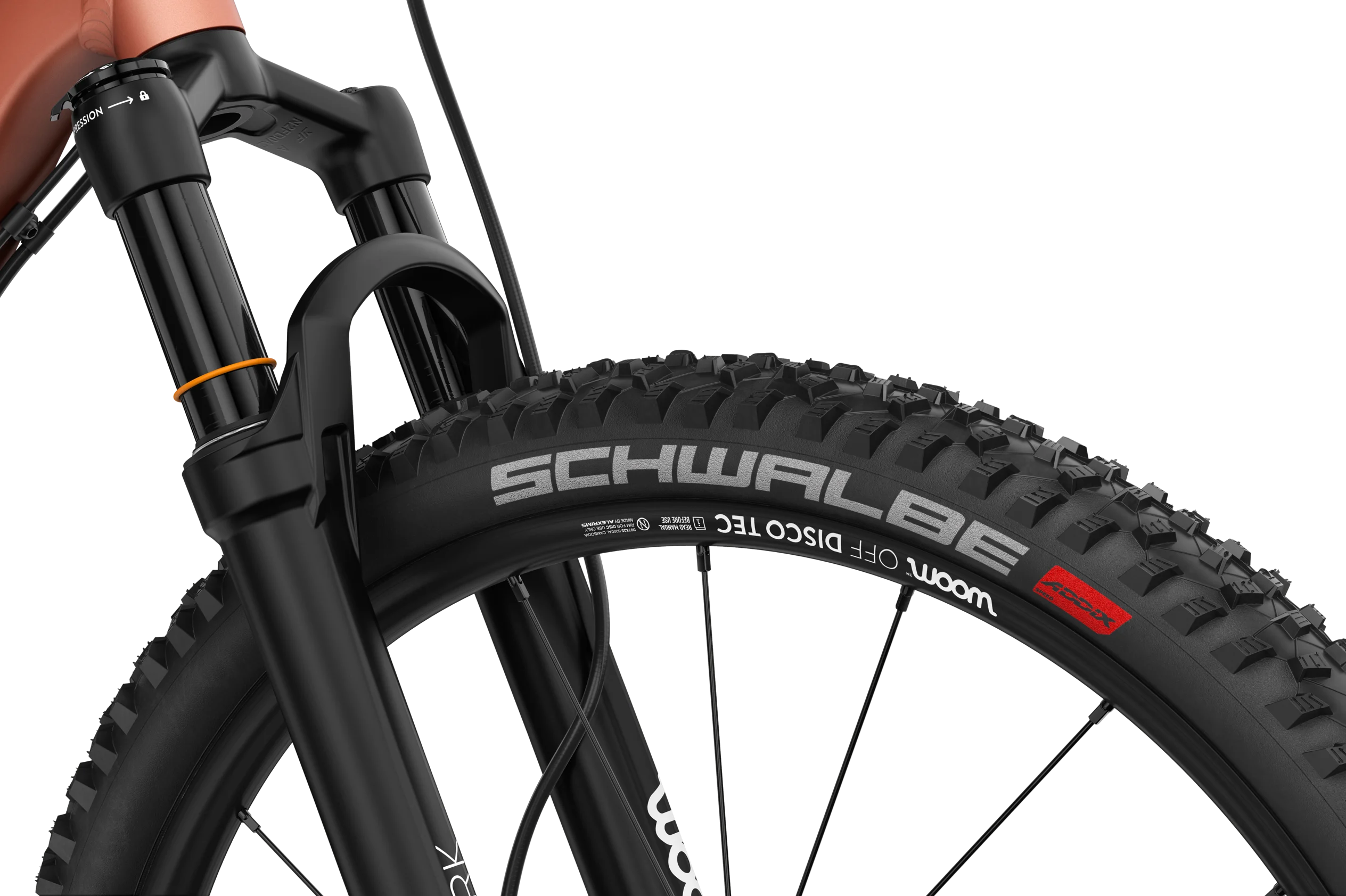 - Dempegaffel: En svært lett og eksklusiv dempegaffel tilpasset barns lette vekt og kjørestil.