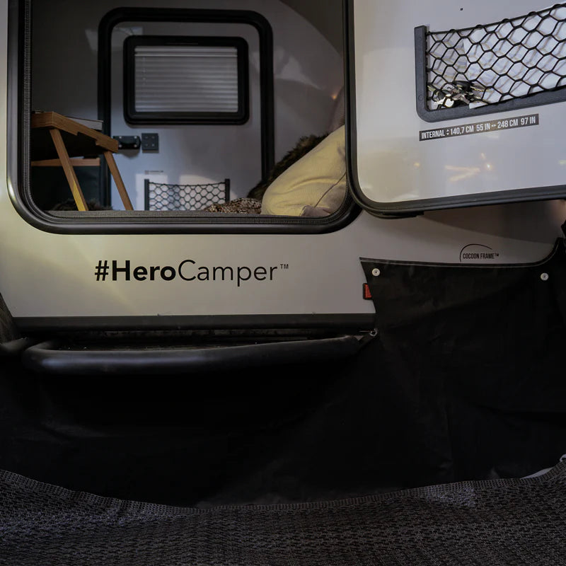 Hero Camper skjørtesett er en praktisk og funksjonell løsning som er utviklet for å forbedre komforten i markisen og kjøkkenteltet. Skjørtet er enkelt å montere på Hero Camperen, og bidrar til å blokkere kald luft og trekk fra å komme inn under og over, noe som gjør det spesielt nyttig i kjøligere årstider. Settet inkluderer et slitesterkt skjørt og hjulbuebeskytter, som gir fullstendig dekning.