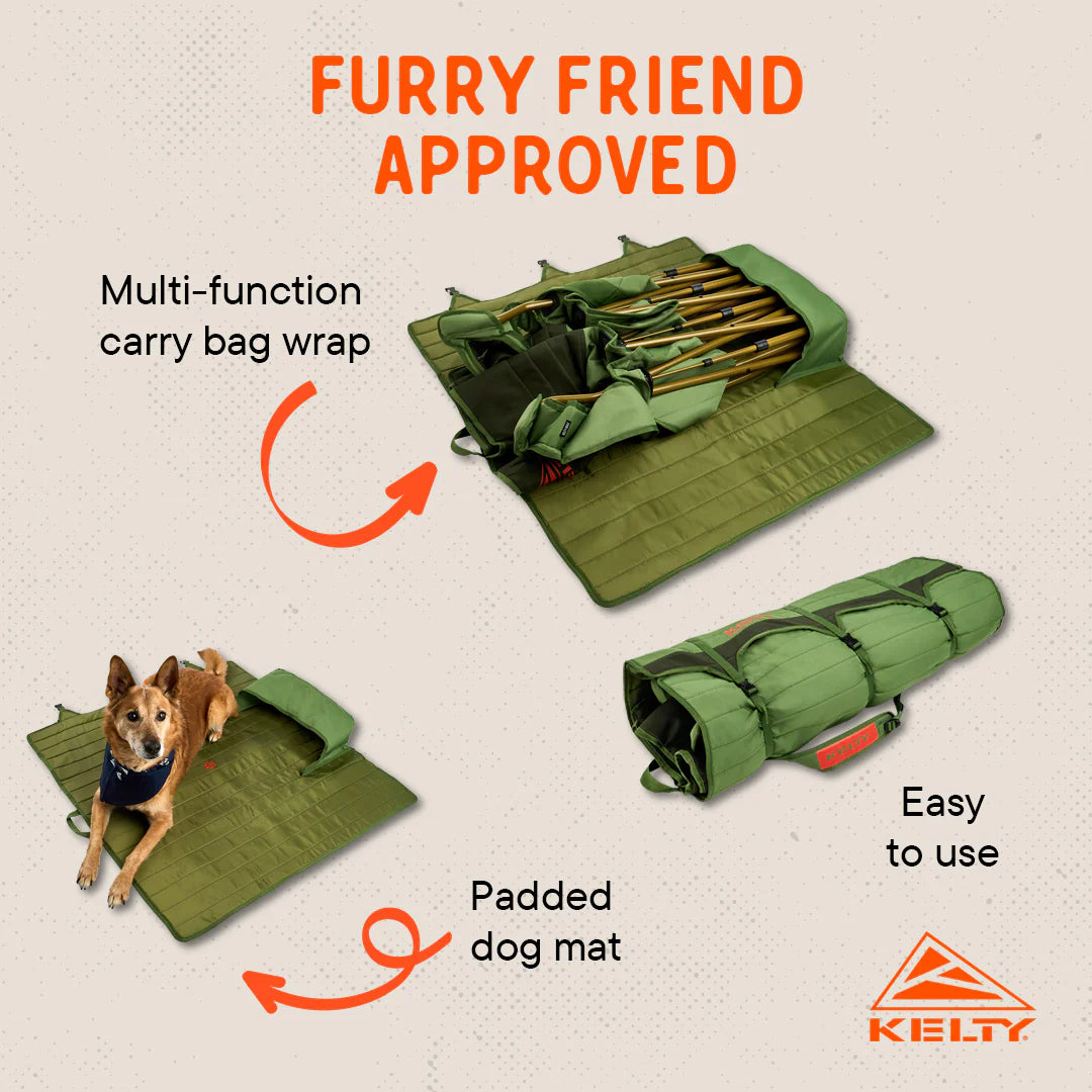 - Carry-Wrap: Multifunksjonelt, brukervennlig bærevev som transporterer ekstra utstyr og fungerer også som en polstret hundematte