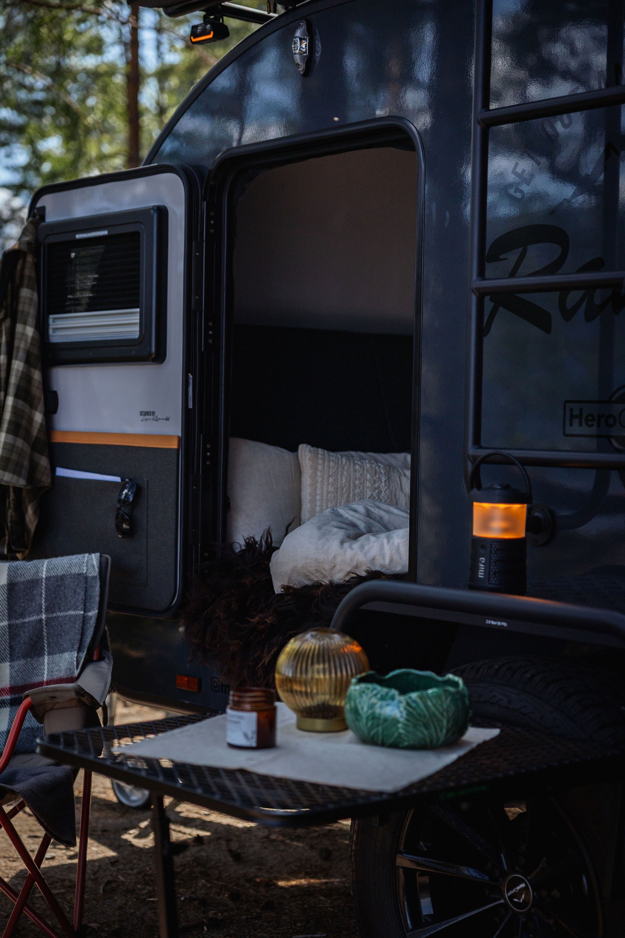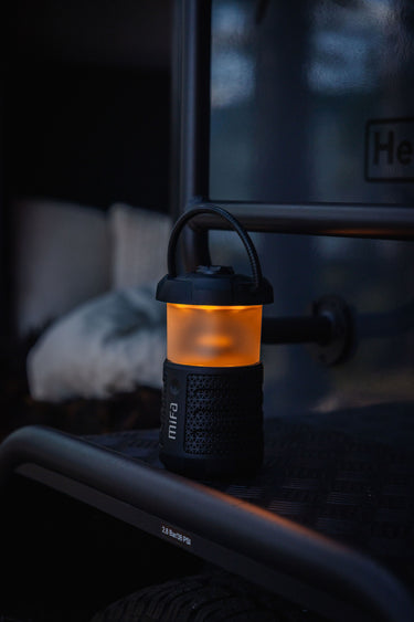 Den innebygde lykten gir et varmt oransje lys (2000 K stearinlyslys eller 2700 K varmhvitt lys), noe som skaper den perfekte atmosfæren etter solnedgang. Takket være batteriet på 9600 mAh kan du nyte opptil 38 timer med musikk eller 18 timer med lys, eller rundt 13 timer med begge deler samtidig.