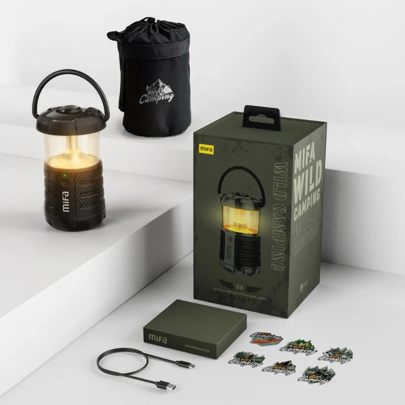 Mifa Wild utendørs høyttaler kombinerer lyd av høy kvalitet med koselig belysning, alt i et robust design laget for eventyr. Med 20 W fullregisterlyd og Bluetooth 5.3 leverer den klar og kraftig lyd enten du camper, er på stranden eller slapper av i hagen.