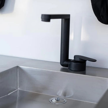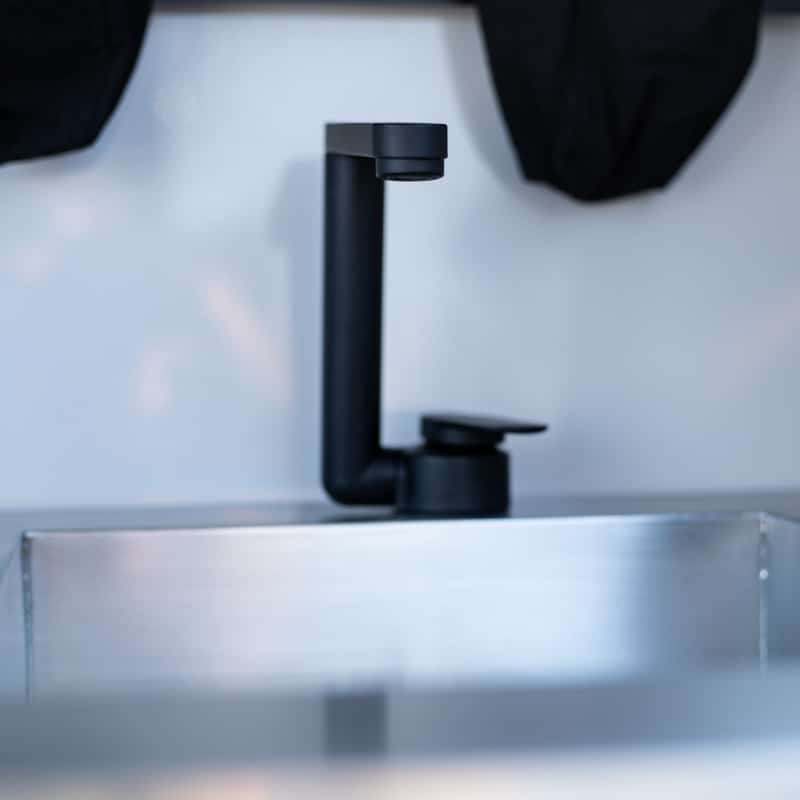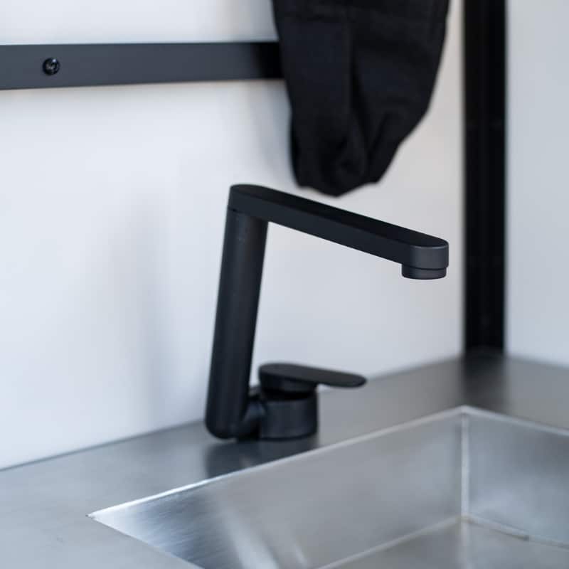 Gi HeroCamper-kjøkkenet ditt et friskt og stilig utseende med denne nye minimalistiske vannkranen. Med sin matte, svarte finish gir kranen et moderne preg som passer perfekt til HeroCamper-kjøkkenet ditt.